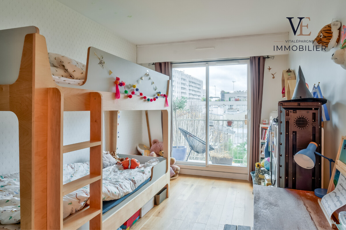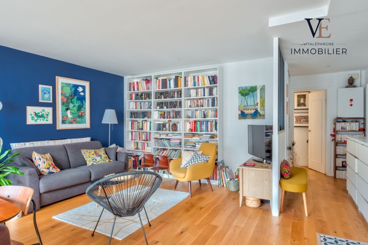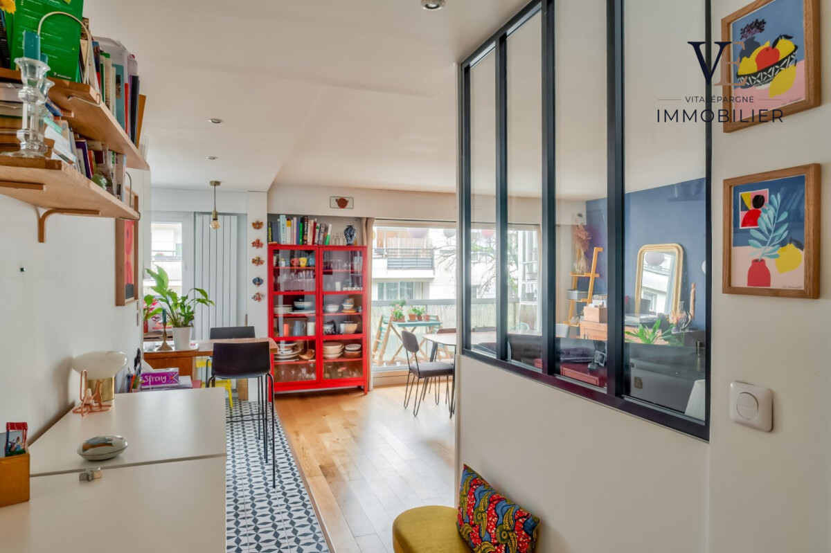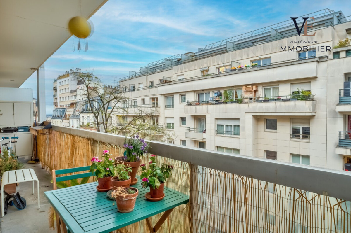 En exclusivité, Paris 19ème, proximité immédiate du Parc des Buttes de Chaumont, appartement traversant de 3 pièces principales entièrement rénové.