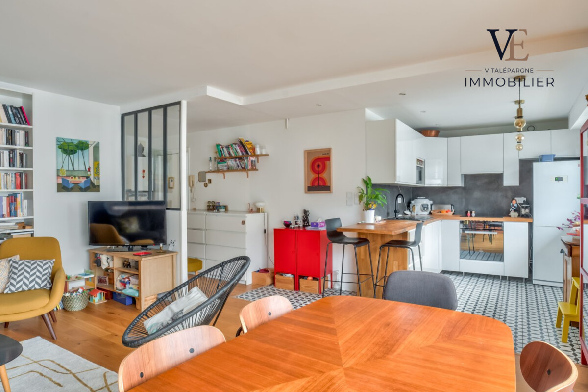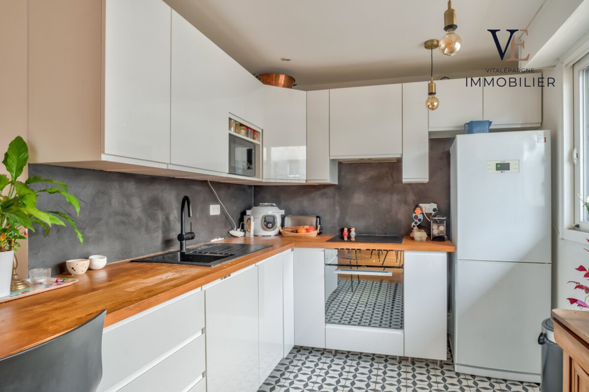 Une entrée avec rangements permet l’accès au lumineux séjour-salle à manger et sa cuisine ouverte aménagée et équipée de 38 m² et baie vitrée sur un balcon filant.