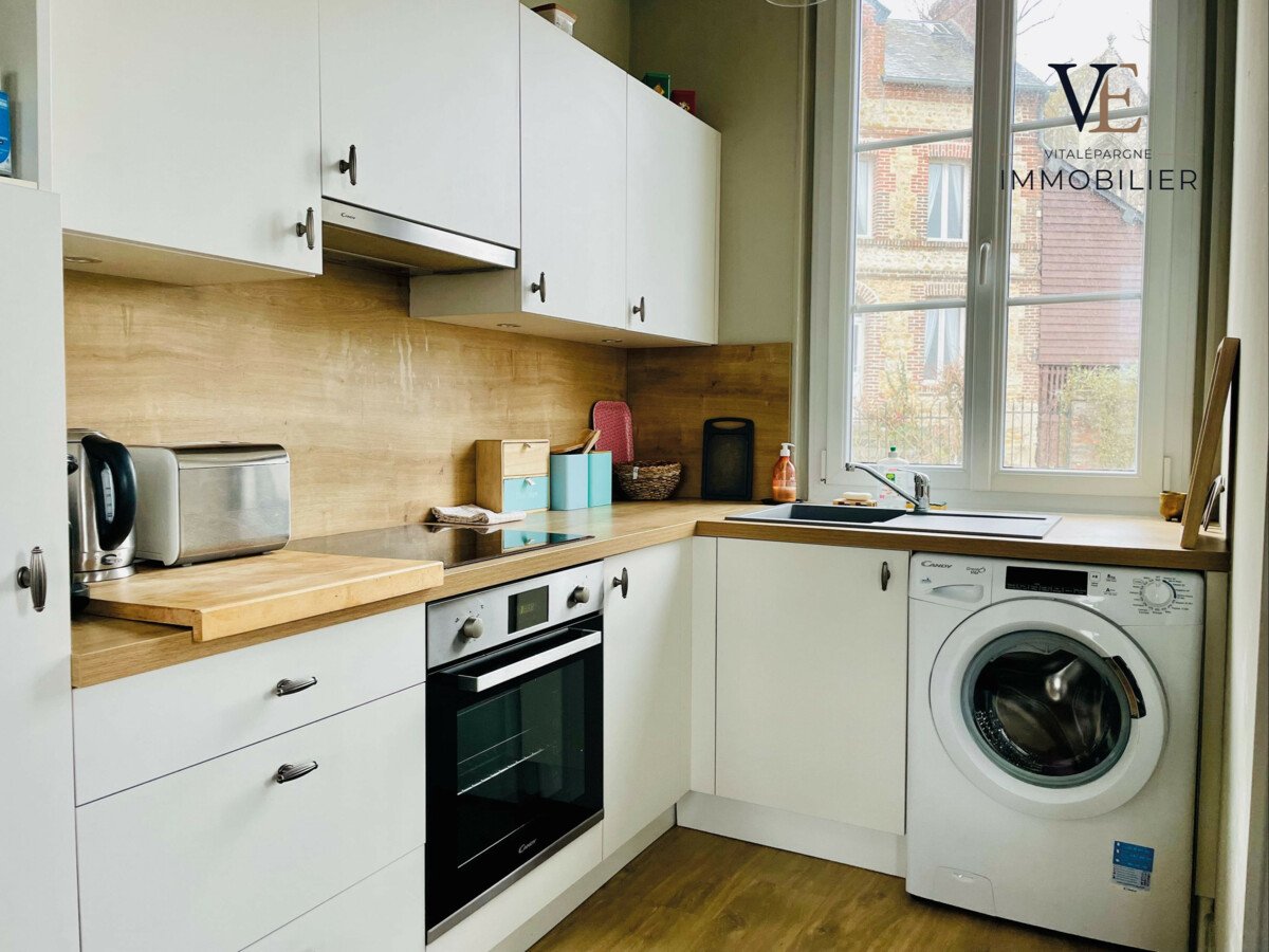 A louer un appartement meublé de 3 pièces principales en duplex dans le coeur du charmant village de Beaumont-en-Auge. Composé d'une entrée avec placards et W.C menant vers une chaleureuse pièce de vie avec espace dînatoire et donnant sur une cuisine ouverte aménagée et très bien équipée (four, réfrigérateur, plaques à induction, micro-onde, lave linge et de nombreux petits électroménagers). A l'étage, 2 chambres avec literie de qualité et dressing ainsi qu'une salle d'eau avec W.C.