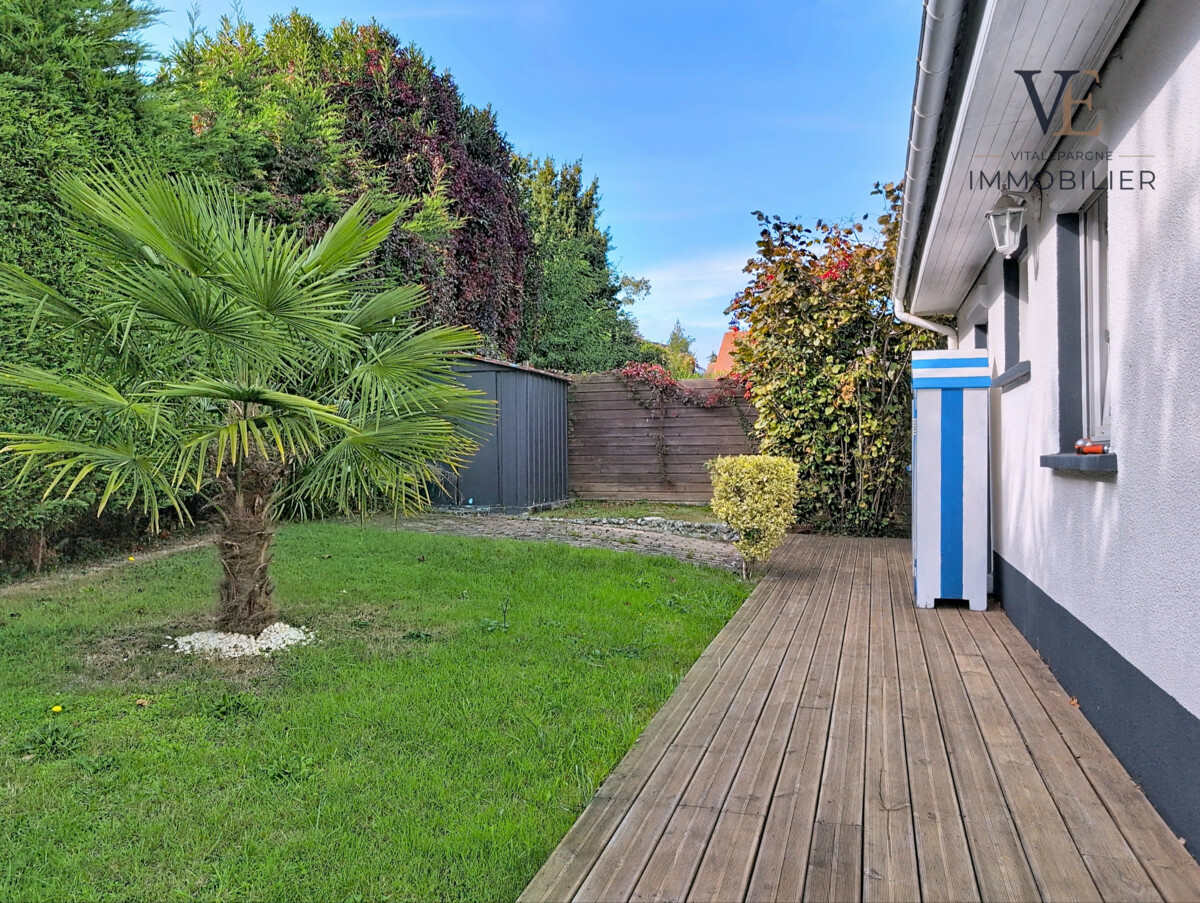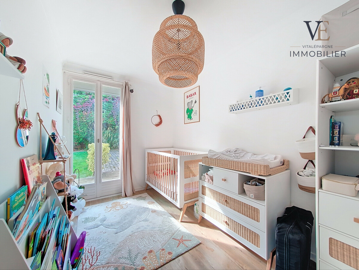 L’extérieur propose un jardin clos et arboré de 450 m², sans vis-à-vis, ainsi qu’un garage et des possibilités de stationnement faciles devant la maison.
