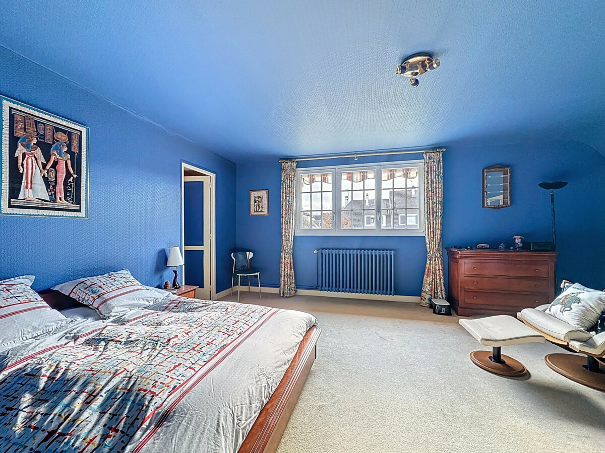 À l’étage, un grand palier distribue une salle d’eau, un WC et quatre chambres, dont une suite parentale de plus de 30 m².