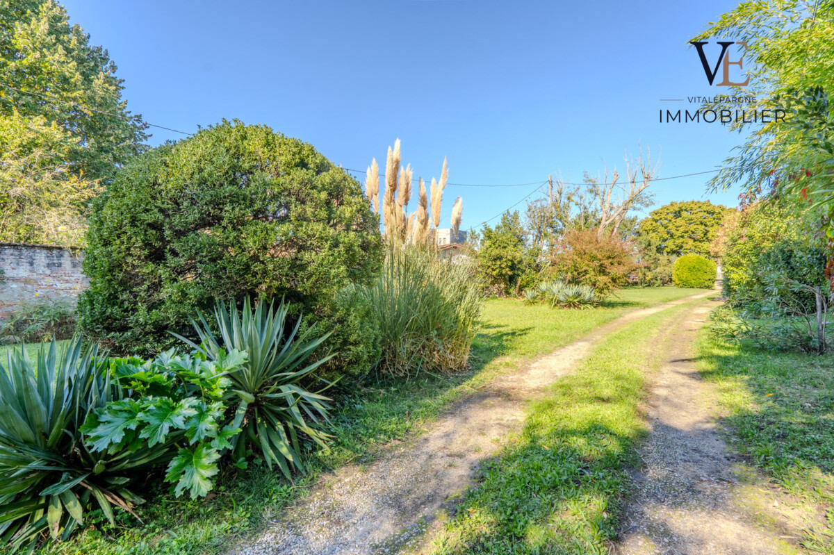 À l'arrière, un parc arboré soigneusement entretenu offre un cadre de vie paisible, apportant une véritable sensation de nature en coeur de ville.